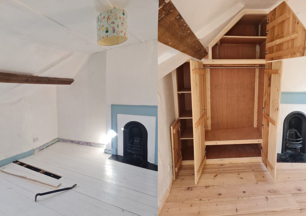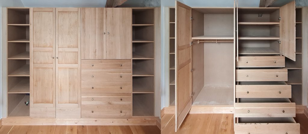 Fit-in wardrobe partly made from reclaimed oak free stand wardrobe